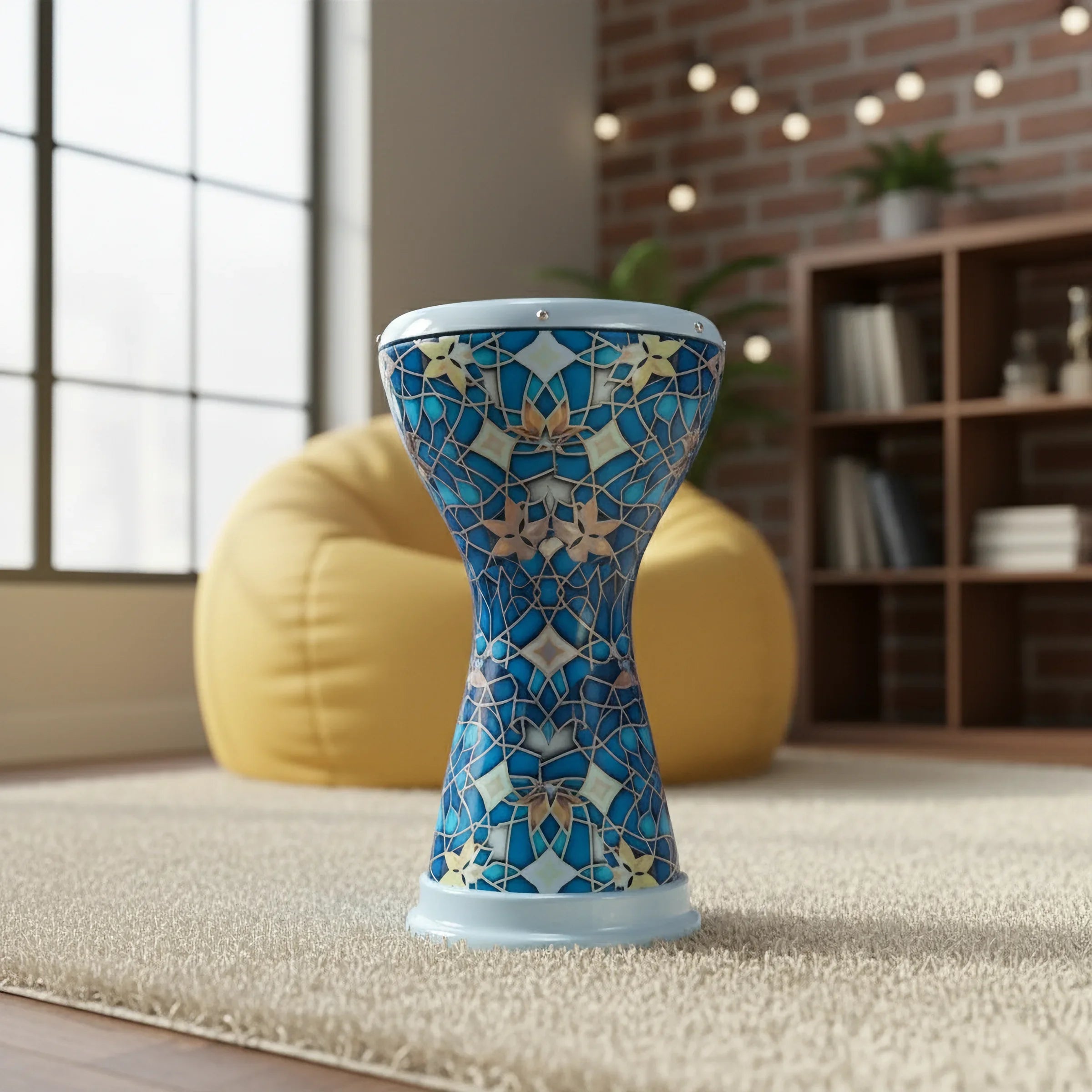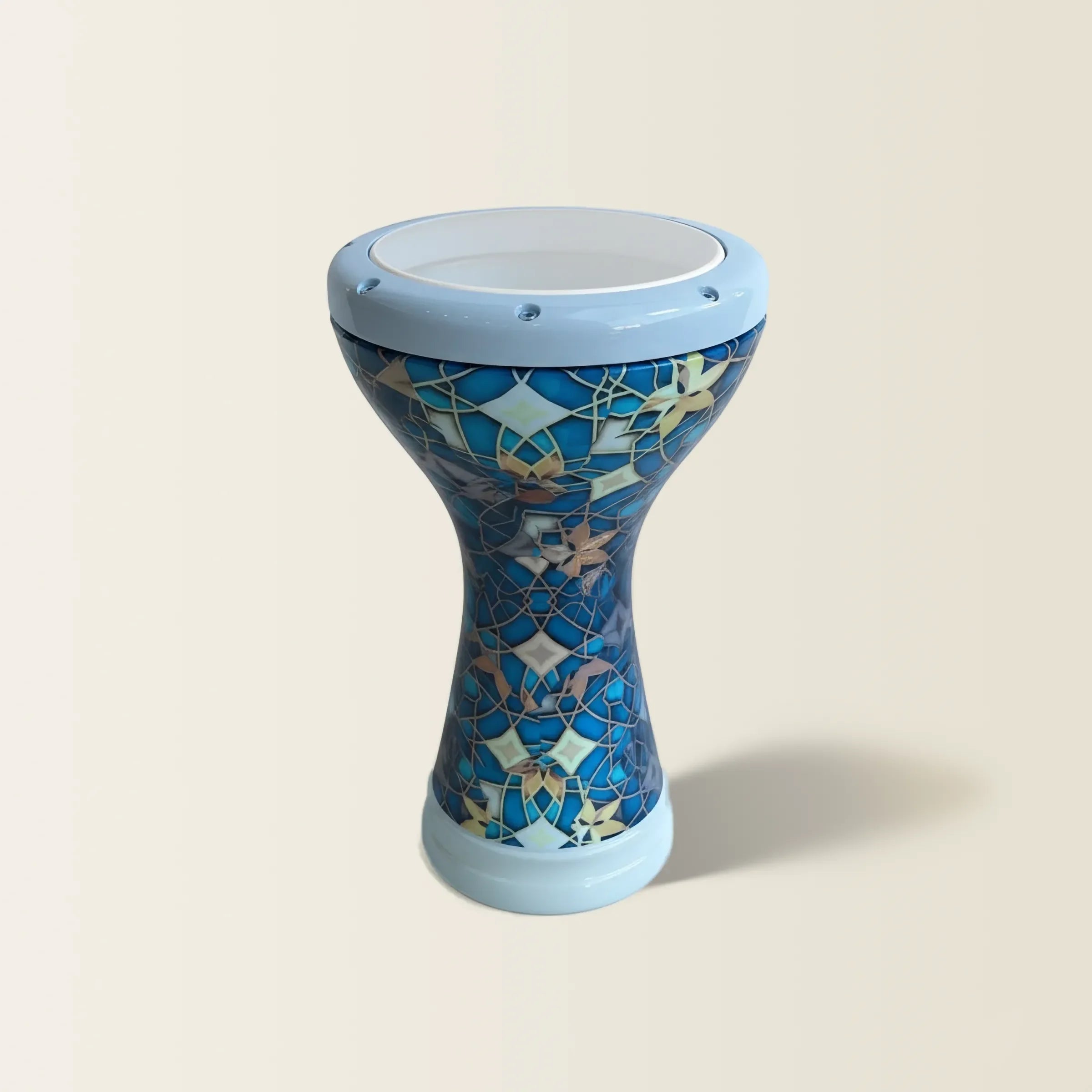 The Goldesi Mosaic Rhythms Darbuka is more than just an instrument; it is a portable piece of art inspired by the vibrant tiles and architectural grandeur of the Mediterranean and Anatolia. Built around a dense 4.0 kg (8.8 lb) cast metal body, this darbuka is engineered for professionals who demand both an exceptional acoustic presence and a captivating visual aesthetic.