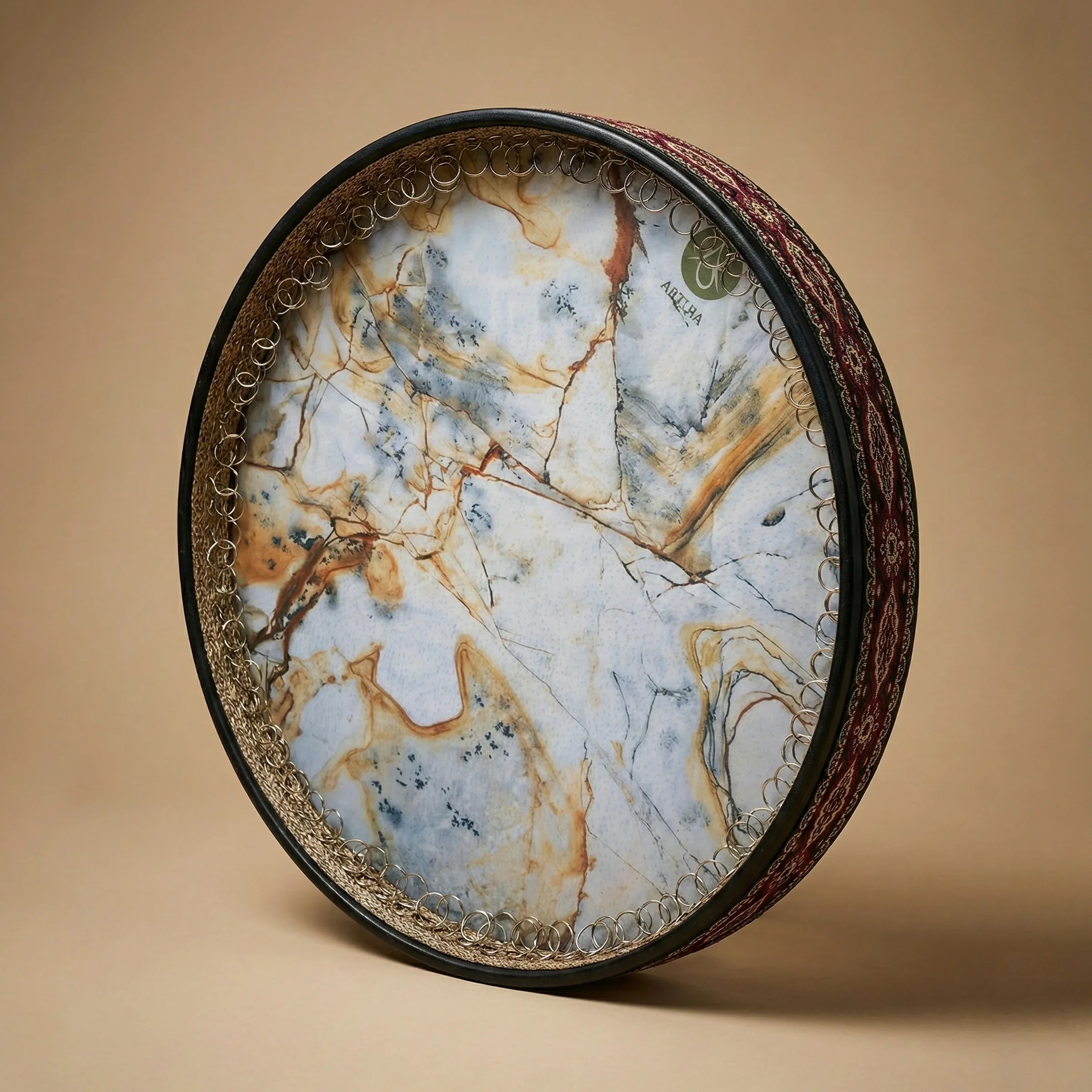 The Ring System: Features high-quality metal chains/rings along the inner rim that produce a rich, continuous buzzing sound (Sustain) essential for Sufi and classical Persian music.